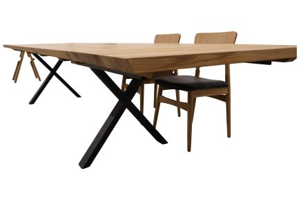 Masa Kent din stejar masiv impresionează printr-un design robust, având un blat finisat într-o nuanță de stejar închis, cu textură naturală și margini neregulate, ce adaugă un aer autentic și rustic. Picioarele model Spider, din metal negru, oferă un contrast modern și stabilitate structurii. Această masă este perfectă pentru interioare industriale sau contemporane, aducând o combinație de eleganță și funcționalitate în orice spațiu de locuit sau lucru.